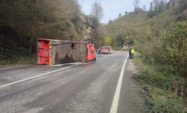 Trabzon‘da yangına müdahaleden dönen itfaiye aracı devrildi.