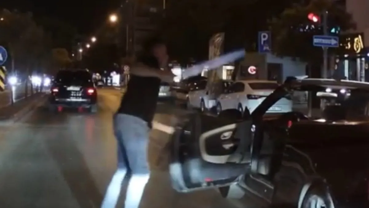 Trafikte dehşeti yaşattı! Döner bıçaklı maganda kamerada…
