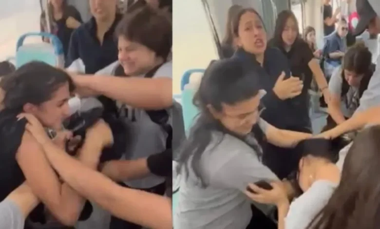 Tramvayda öğrenci kavgası! Bir grup kız saç baş birbirlerine girdi: O anlar kamerada