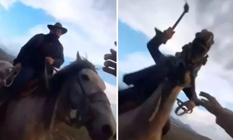 Aileyi tehdit eden şüphelilerin polisteki işlemleri sürerken, olaya ilişkin görüntüler ortaya çıktı. Görüntülerde, H.Ö.’nün A.K.’nin yanına giderek, “Dayı sen mi küfrettin ablama? Ablama sen mi küfrettin?’ dediği, A.K.’nin ise “Alana girme diyorum, giriyor” dediği ve atıyla H.Ö.’nün üzerine giderek kırbaçla vurduğu görüldü.