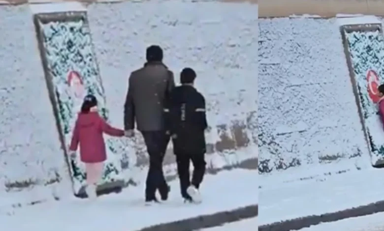Yolda babası ile yürüyen küçük bir kız karla kaplı Türk bayrağını gördü. Bu duruma kayıtsız kalamayan minik kız bayrağın yanına gelerek önce sildi ve kardan arındırdı.