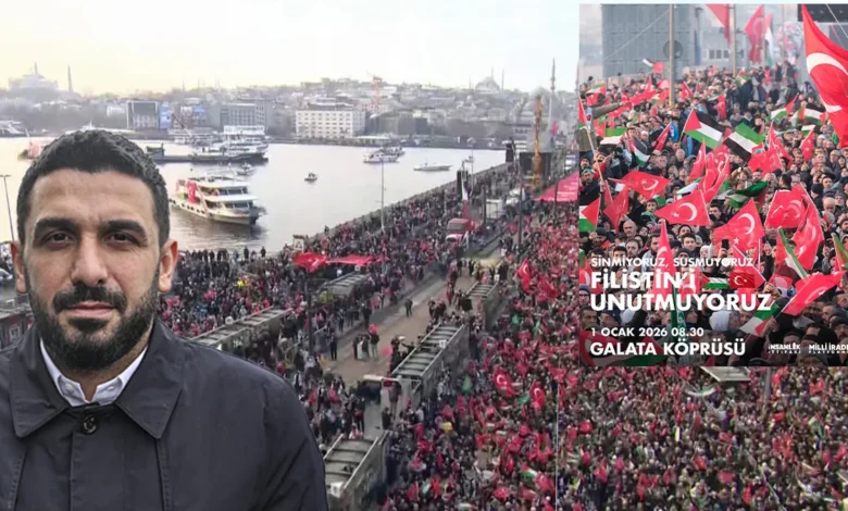 Galata Köprüsü, farklı şehirlerden katılanlara vicdan kürsüsü oluyor. Gazze’deki kardeşlerimize sesleniyoruz: Biz sizden hiç kopmadık, uzaklaşmadık!