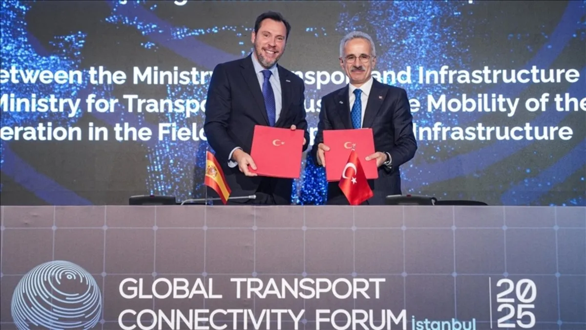 İstanbul Kongre Merkezi’ndeki “Küresel Ulaştırma Koridorları Forumu”nda gerçekleşen imza törenine, Ulaştırma ve Altyapı Bakanı Abdulkadir Uraloğlu ile İspanya Ulaştırma ve Sürdürülebilir Hareketlilik Bakanı Oscar Puente Santiago katıldı.