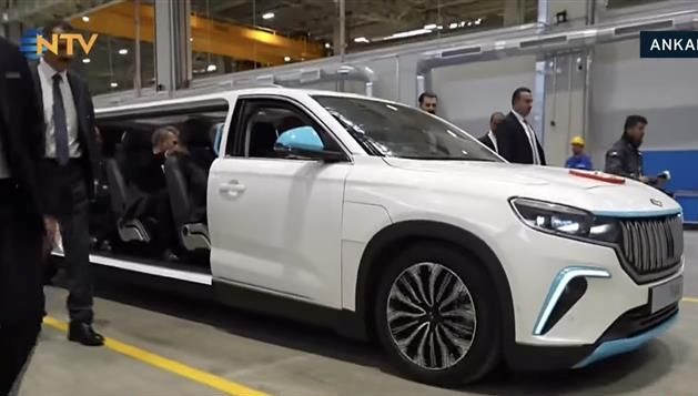 Beyaz renk üretilen limuzin Togg’un elektrikli motorunun bulunduğu kaputunun üstünde Cumhurbaşkanlığı forsu bulunuyor.