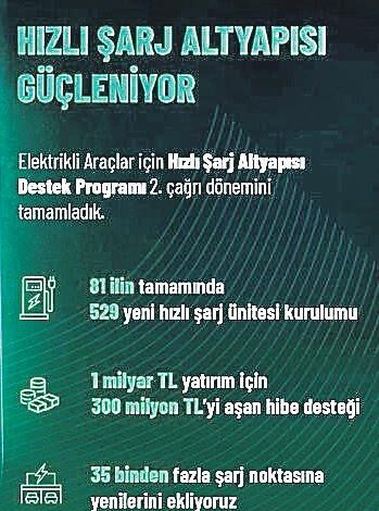 Bakan Kacır, şu ifadeleri kullandı: “Elektrikli Araçlar için Hızlı Şarj Altyapısı Destek Programı’mızın ikinci çağrısını tamamladık. 81 ilin tamamında 529 ünite kurulumuna daha destek veriyoruz. 1 milyar liralık yatırım için 300 milyon lirayı aşan hibe desteği sunuyoruz. 35 bini aşkın şarj noktasına yenilerini ekleyerek altyapıyı ülkemizin her noktasına taşıyoruz.”
