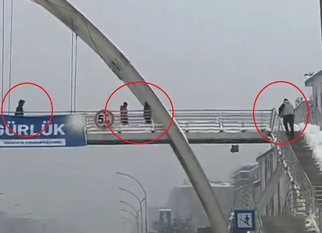 Çevredeki bir kişi tarafından cep telefonu kamerasıyla alınan kayıtta, üst geçitteki çocukların yanına giden kişinin çocukları yumruk atarak yere düşürüp, ardından tekmelediği görüldü. Sanal medyada paylaşılan görüntüler tepki çekti.