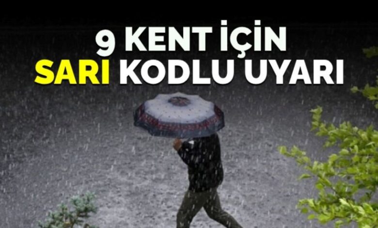 9 İL İÇİN SARI KODLU UYARI