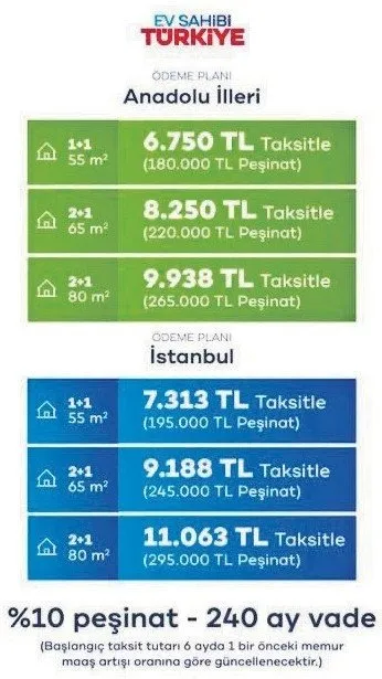 ● Ayrıca, daha önce TOKİ projelerinden ev sahibi olanların eşleri de 500 Bin Sosyal Konut Projesi’ne başvuru yapamayacak.