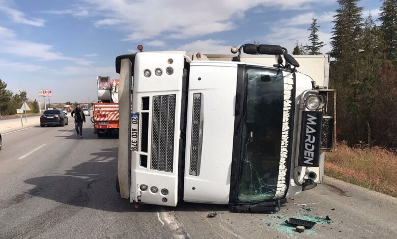 Yağ yüklü kamyon devrildi: 1 yaralı