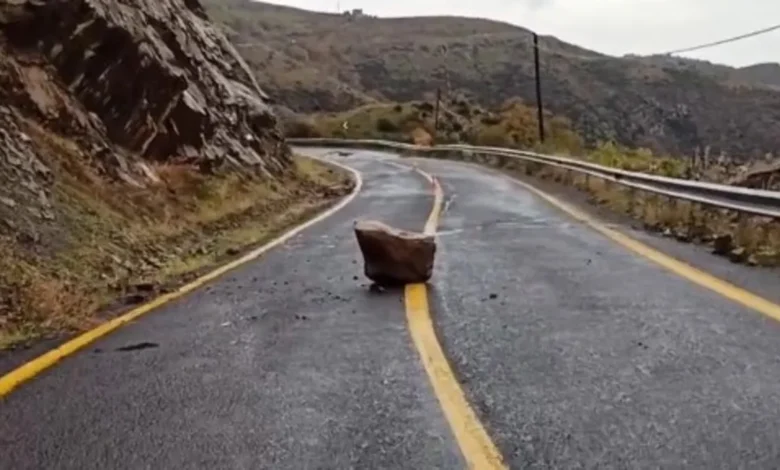 Yağış sonrası korku dolu anlar! Kaya parçaları yola yuvarlandı