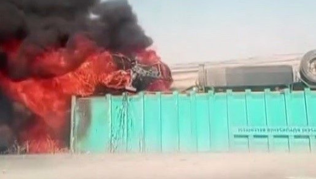 Tırın devrileceğini anlayan sürücü atlarken, yoldan çıkan tır bir süre devrildi. Tır devrildikten sonra alev alırken, ihbar üzerine bölgeye polis, sağlık ve itfaiye ekipleri sevk edildi.