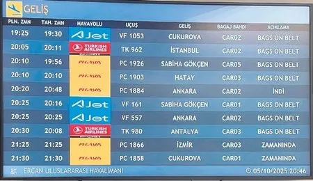 Ercan Havalimanı… Uçağın biri iniyor, biri kalkıyor.