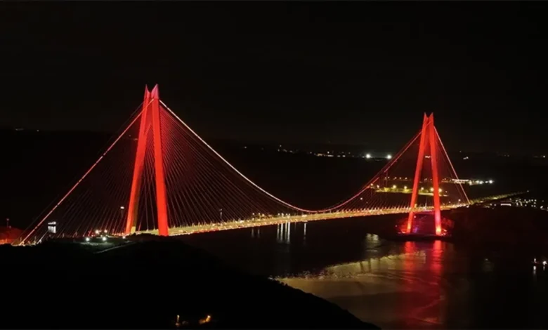 Yavuz Sultan Selim Köprüsü turuncu renge büründü