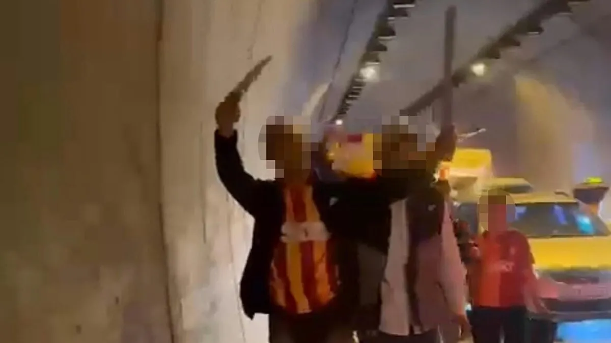 Galatasaray’ın Süper Lig’in 36’ncı haftasında Kayserispor’u yenerek bitime 2 hafta kala şampiyonluğunu ilan etmesi sonrası sarı-kırmızılı taraftarlar İzmir’de sokaklara çıktı. Kutlamalarda, kentin en yoğun olan cadde ve sokaklarında taraftarlar ellerinde bayraklarla marşlar söyleyip, şampiyonluk coşkusunu yaşadı. Kutlamalarda sadece araç geçişine açık olan Konak Tüneli’nde ellerinde döner bıçaklarıyla yürüyen 2 taraftar dikkat çekti. Ellerindeki bıçakları sallayıp yürüyen 2 taraftar, bir başka kişi tarafından cep telefonuyla görüntülendi.