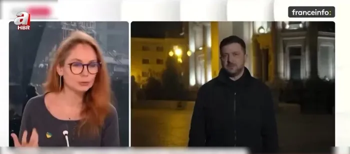 Ukrayna Devlet Başkanı Volodimir Zelenskiy Fransız TV kanalına röportaj verirken (A HABER Ekran Görüntüsü)