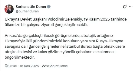 Zelenskiy, yarın Türkiye’de üst düzey görüşmeler yapacağını belirterek, “Müzakereleri canlandırmak için hazırlıklar yaptık ve partnerlerimize sunacağımız çözümler geliştirdik. Savaşın sonunu yaklaştırmak Ukrayna için en büyük önceliktir.” dedi.